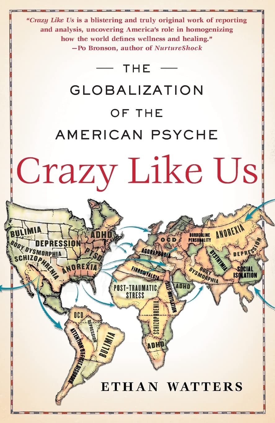 Publisher Description: "A blistering and truly original work of reporting and analysis, uncovering America's role in homogenizing how the world defines wellness and healing" (Po Bronson). In Crazy Like Us, Ethan Watters reveals that the most devastating consequence of the spread of American culture has not been our golden arches or our bomb craters but our bulldozing of the human psyche itself: We are in the process of homogenizing the way the world goes mad. It is well known that American culture is a dominant force at home and abroad; our exportation of everything from movies to junk food is a well-documented phenomenon. But is it possible America's most troubling impact on the globalizing world has yet to be accounted for? American-style depression, post-traumatic stress disorder, and anorexia have begun to spread around the world like contagions, and the virus is us. Traveling from Hong Kong to Sri Lanka to Zanzibar to Japan, acclaimed journalist Ethan Watters witnesses firsthand how Western healers often steamroll indigenous expressions of mental health and madness and replace them with our own. In teaching the rest of the world to think like us, we have been homogenizing the way the world goes mad.