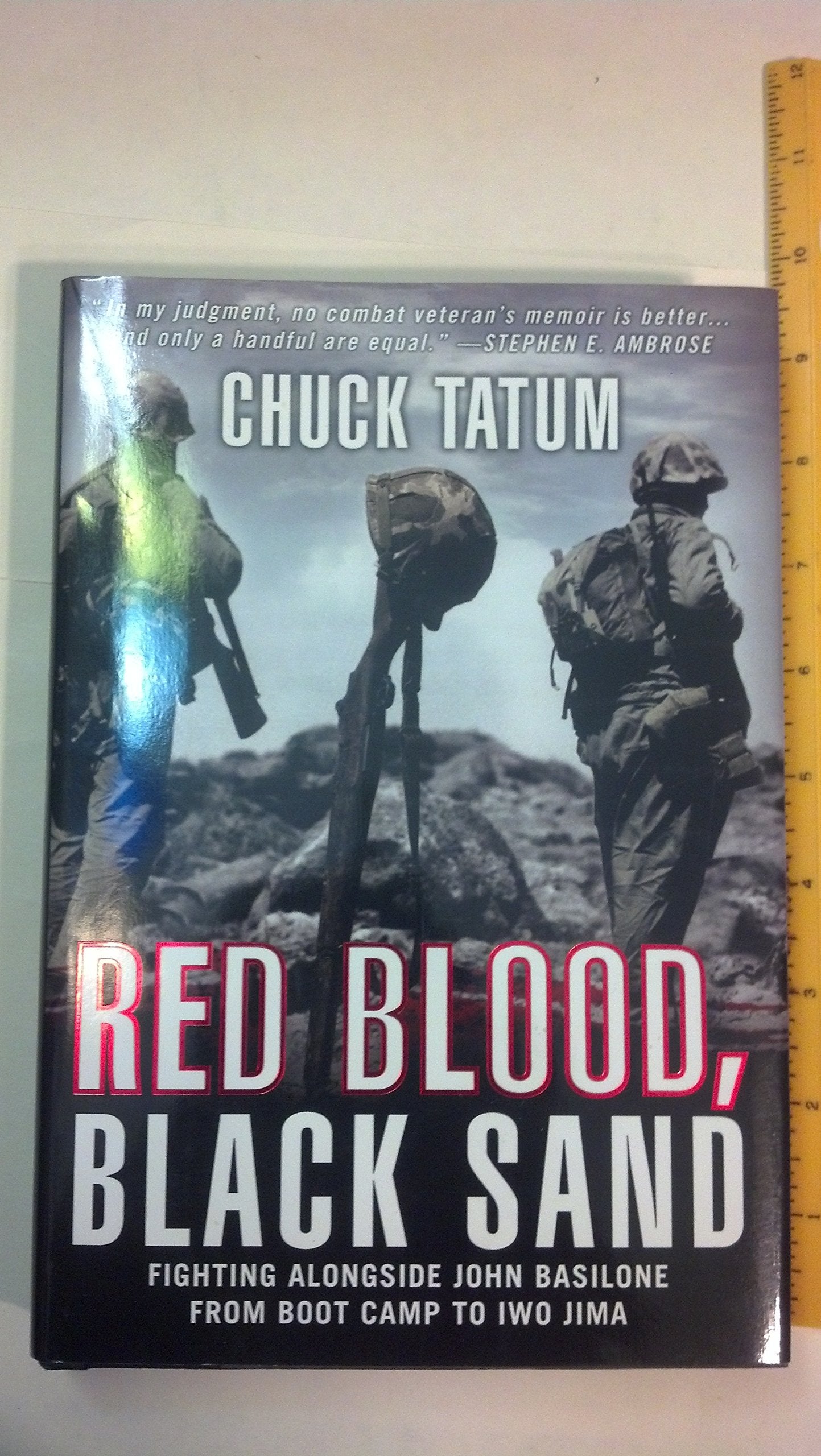 "Red Blood, Black Sand" is the story of Chuck s two weeks in hell, where he would watch his hero, Basilone, fall, where the enemy stalked the night, where snipers haunted the day, and where Chuck would see his friends whittled away in an eardrum-shattering, earth-shaking, meat grinder of a battle.